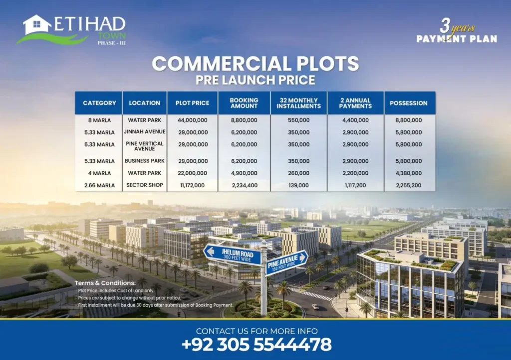 Lahore’s commercial expansion has created a sharp increase in demand for well planned business spaces. Investors now place a higher value on areas with planned commercial belts, reliable development, and direct road access. Investors seeking both rental income and capital appreciation are gaining interest in Etihad Town Phase 3 Commercial Plots precisely because of this.